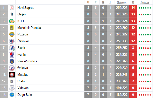 Približava se i kraj jeseni kod rukometaša u 1.HRL Sjever, a dva od tri slavonska kluba definitivno mogu biti zadovoljna s dosadašnjim tijekom sezone. Osijek i Požega igraju u dobroj formi, nizaju se pobjede te je krajnji cilj, vrh tablice, sasvim realan. Osijek će u ovom kolu odigrati svojevrsni derbi, protiv vodećeg Novog Zagreba. Bit će to zanimljiv dvoboj između prvoplasiranog i trećeplasiranog na ljestvici, s tim da Osijek pobjedom u ovom susretu može preuzeti vodstvo na ljestvici, a bolja motivacija za izabranike trenera Daga Kovačevića nije potrebna pa će se na Zrinjevcu gledati vrhunski rukomet, a bilo bi lijepo uz veliku podršku gledatelja. Gosti dolaze u Osijek sa samo jednim porazom ove sezone, odlična forma je pristuna tako da Osijeku neće biti nimalo lako te će morati dati sve od sebe za ovu pobjedu. Dvoboj je na rasporedu u subotu, kao što je napisano igra se u dvorani Zrinjevac, a početak utakmice je u 16 sati.