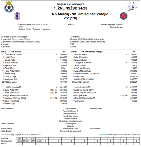 NK Mračaj – NK Omladinac Vranjic 2:2