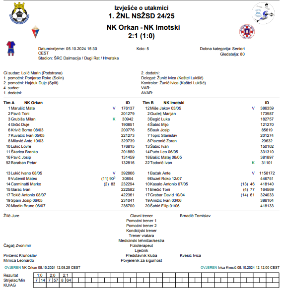 Derbi sredine tablice pripao je domaćinu. Orkan pobjedom na domaćem terenu dolazi do broja od ukupno šest osvojenih bodova. Time su sada ove dvije ekipe izjednačene, no bolja gol razlika drži Imotski dvije pozicije iznad. Čak devet žutih kartona na utakmici, od čeka su sedam zaradili domaći. Sudeći po ovome da se zaključiti kako je igrana jedna čvrsta i muška utakmica. Svim silama domaći su tražili 3 boda, te ih na kraju i osvojili. U prvom dijelu viđen je jedan pogodak. 14. minuta i Kuvačić postiže svoj prvi pogodak danas i dovodi Orkan u prednost, pri ovom rezultatu se odlazi na predah. Zatim u 54. minuti ponovo Kuvačić zabija i postiže svoj drugi gol danas. Nisu odustali gosti. 64. minuta donosi smanjenje rezultata i nadu za gosta. Pogodak zabija Plazonić. Na žalost po gosta, dalje od ovoga nisu uspjeli i utakmica završava rezultatom 2:1.