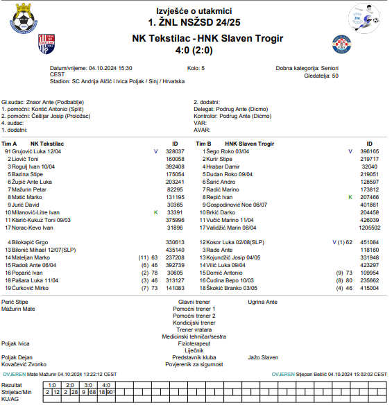 NK Tekstilac – HNK Slaven Trogir 4:0