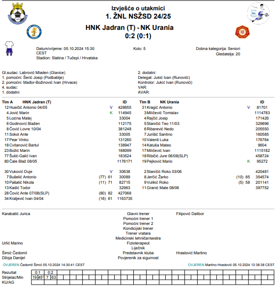 – Sigurna pobjeda od 3:1 koja je mogla biti i izraženija jer smo promašili još puno stopostotnih prilika. Gosti su poveli vrlo rano iz jedne kontre ali smo se mi brzo vratili i preokrenuli rezultat. Dominirali smo kroz cijelu utakmicu i vidjela se velika razlika u kvaliteti. Pravo je čudo da nismo zabili još par golova ali jednostavno nismo bili raspoloženi u završnici što zbog teškog i natopljenog terena te njihovog golmana koji je fantastično branio cijelu utakmicu. Uglavnom zaslužena pobjeda i sada se okrećemo teškom gostovanju kod NK Mračaj u Runoviću.– rekao je Tomas, trener Jadrana.