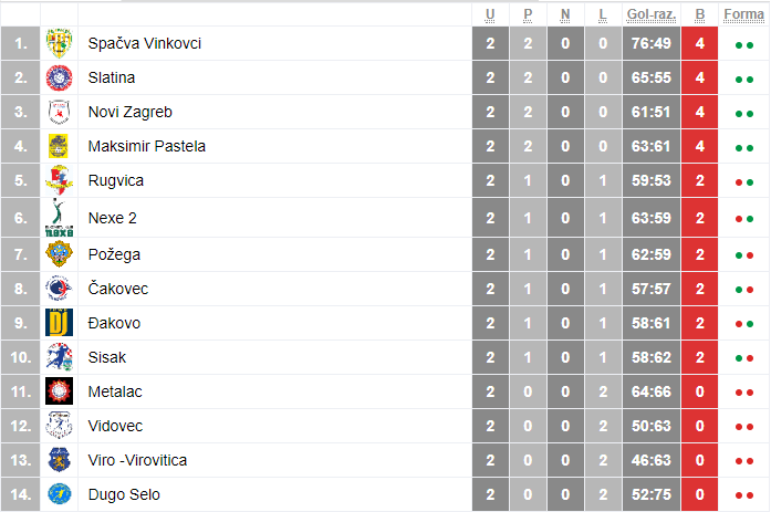 Nakon dominantnog prvog kola, i u drugom se Spačva pokazala kao možda i najjača momčad prvenstva. Na gostovanju u Dugom Selu Vinkovčani su slavili s ogromnih 28:44. Izrazito jednosmjeran susret je od početka bio na vinkovačkoj strani te domaćini jednostavno nisu mogli parirati raspoloženim gostima. Uz konstantan rast broja pogodaka na semaforu, veseli u redovima Vinkovčana to da su strijelci bili izrazito raznovrsni. Najbolji je ipak bio Filip Mažurana s odličnih 11 pogodaka, dok je domaćine predvodio Zvonimir Deronja s 8.