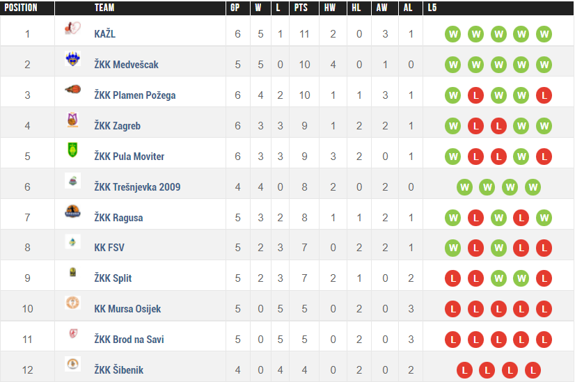 Stanje na ljestvici je ostalo više-manje isto. Na vrhu se nalazi KAŽL, a iza su Medveščak i Plamen Požega. Dno je rezervirano za Mursu, Brod na Savi i Šibenik, a sve tri ekipe su bez pobjede ove sezone te im slijedi grčevita borba za ostanak u ligi.