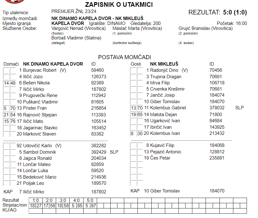 Dinamo nastavlja sa dobrim partijama na svome terenu, a ovoga puta nastradao je Mikleuš. Premda je prvo poluvrijeme završilo sa skromnih 1:0, u nastavku je ekipa Dinama stisnula i sa 5 golova u mreži ispratila goste.