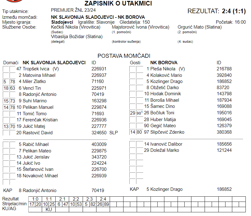 SLAVONIJA SLADOJEVCI – BOROVA 2:4