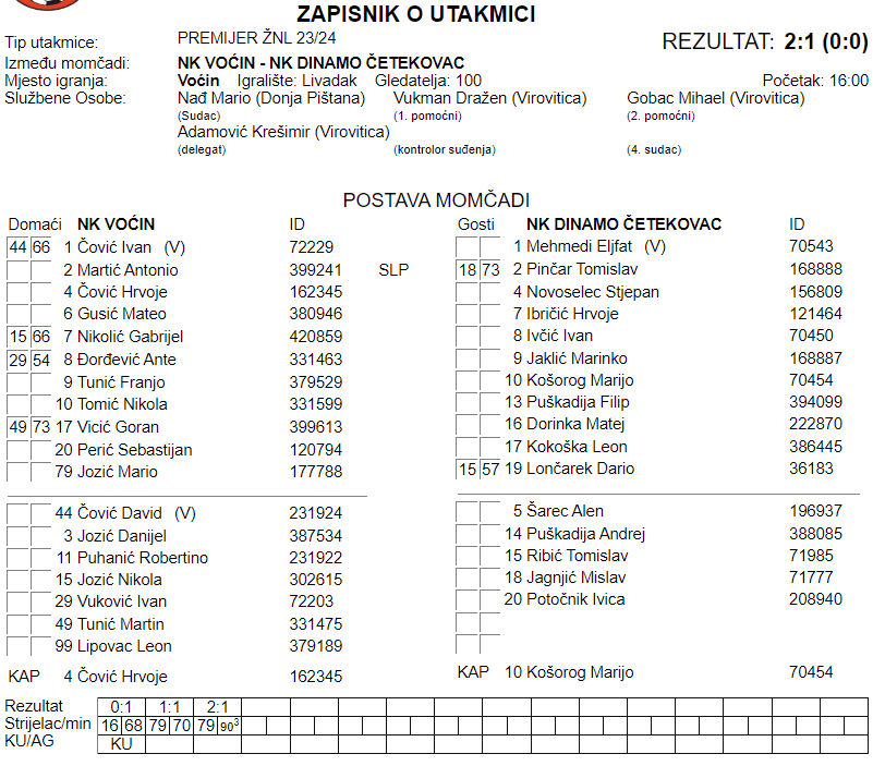 VOĆIN – DINAMO ČETEKOVAC 2:1