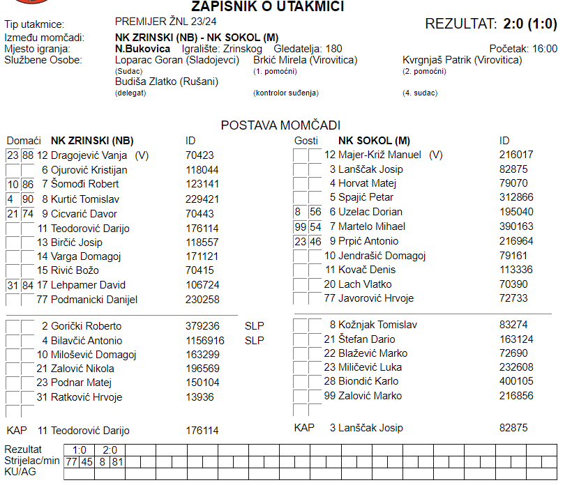 Zrinski je na svome terenu uspio pobijediti Sokol koji nije imao odgovor na raspoloženog domaćina. U prvom dijelu mrežu je pogodio Podmanicki, a pobjedu potvrdio Kurtić.