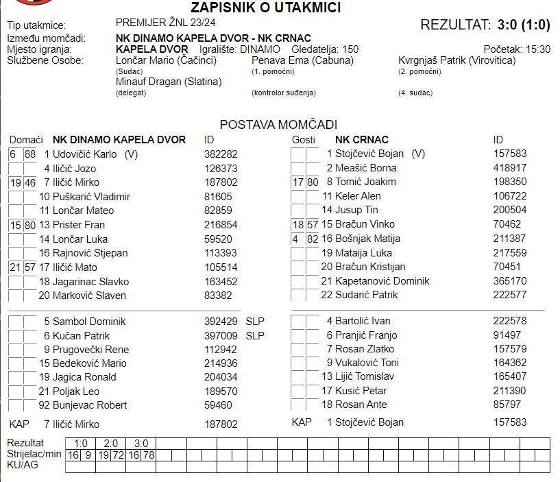 NK DINAMO KAPELA DVOR – NK CRNAC 3:0