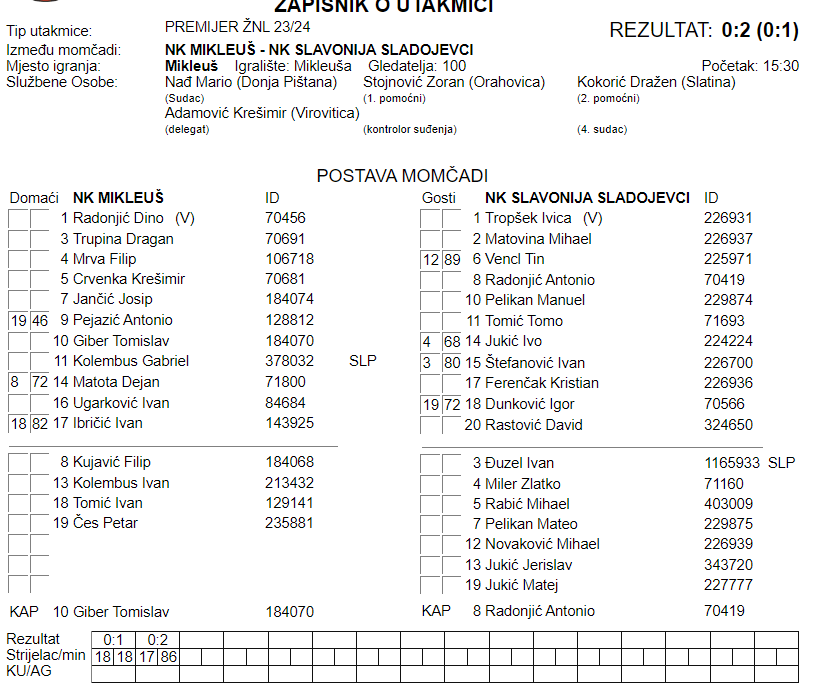 NK MIKLEUŠ – NK SLAVONIJA SLADOJEVCI 0:2