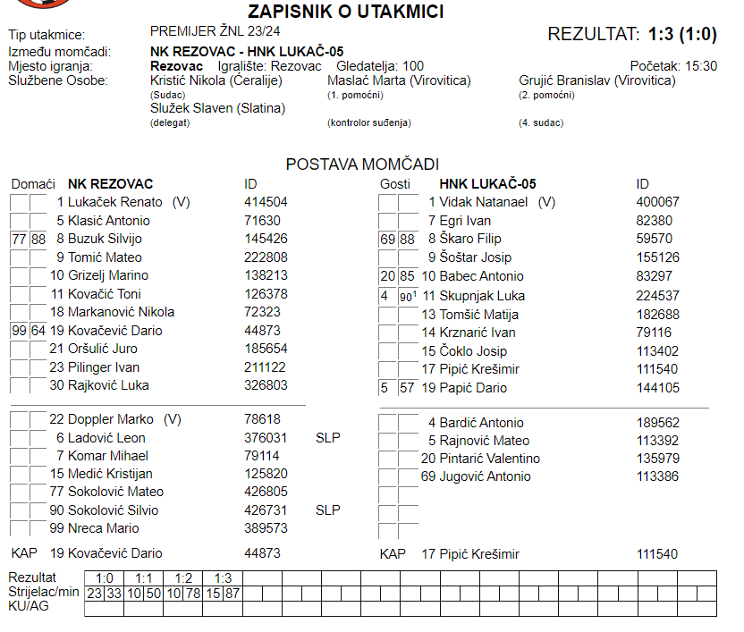 NK REZOVAC – HNK LUKAČ-05 1:3