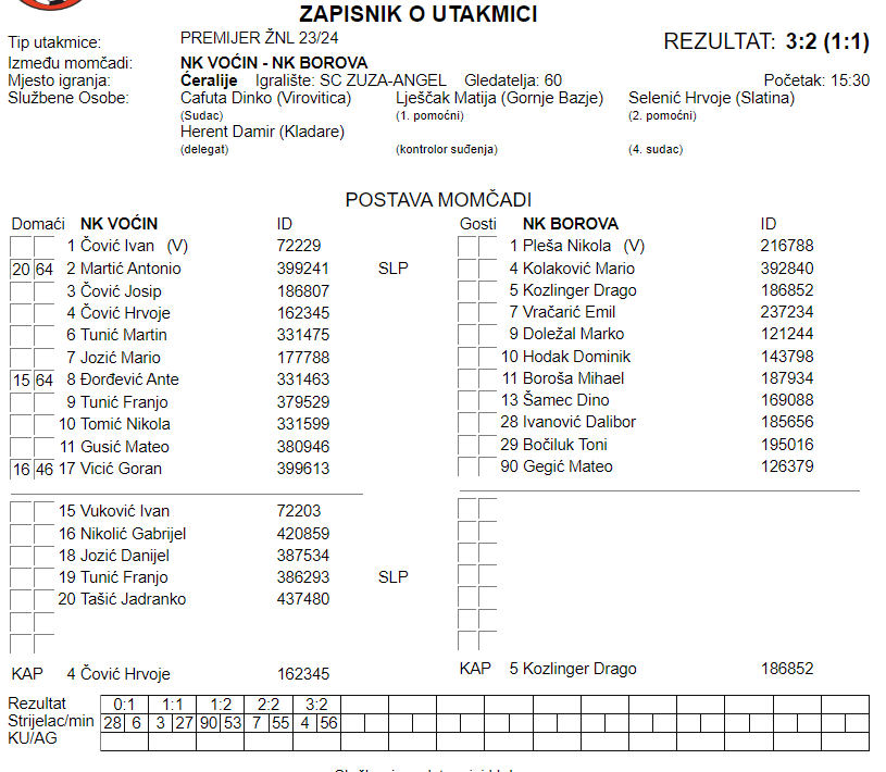 Odlazimo totalno nekompletni na teško gostovanje. Vodili smo u dva navrata protiv odlične ekipe, ali ipak gubimo bodove. Čestitke ekipi Voćina na pobijedi i želimo im sreću u nastavku prvenstva. – poručuju iz uprave Kluba.