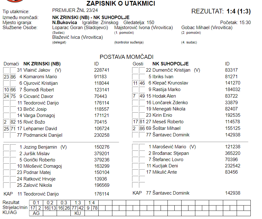 NK ZRINSKI (NB) – NK SUHOPOLJE 1:4
