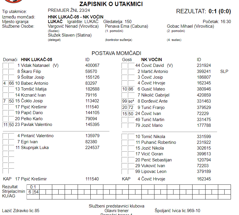 HNK LUKAČ 05- NK VOĆIN 0:1