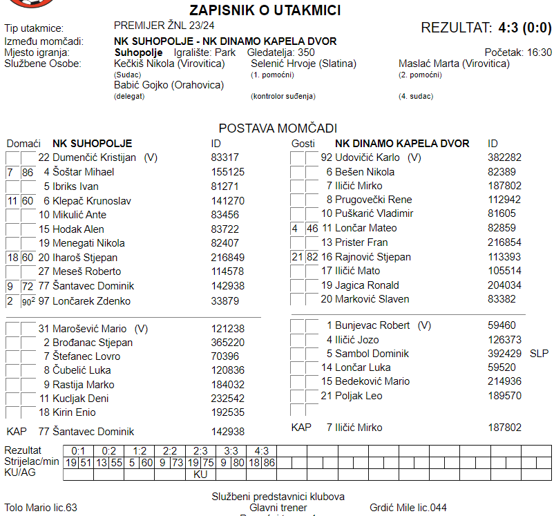 NK SUHOPOLJE – NK DINAMO KAPELA DVOR 4:3
