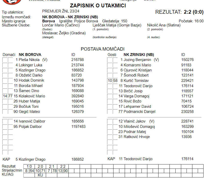 NK BOROVA – NK ZRINSKI NOVA BUKOVICA 2:2