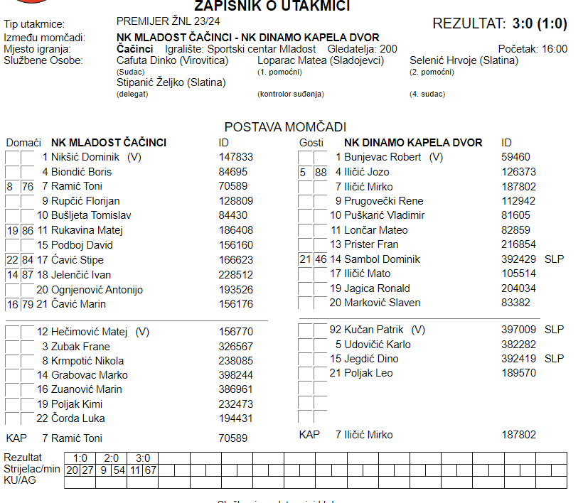 NK MLADOST ČAČINCI – NK DINAMO KD 3:0