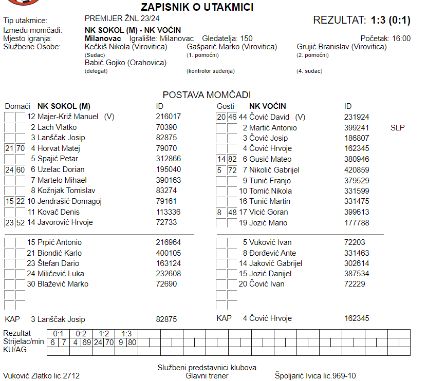 NK SOKOL MILANOVAC – NK VOĆIN 1:3