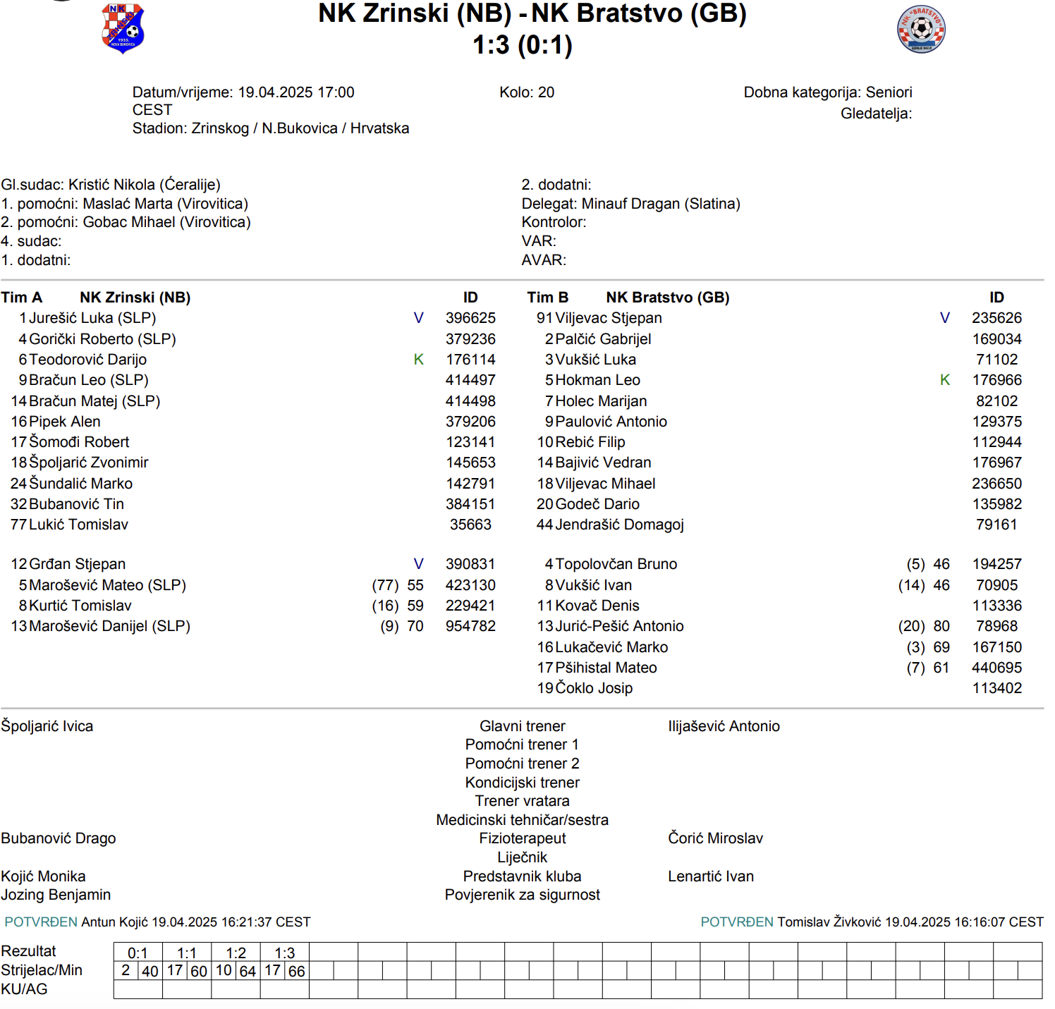 ZRINSKI(NB) – BRATSTVO(GB) – 1:3