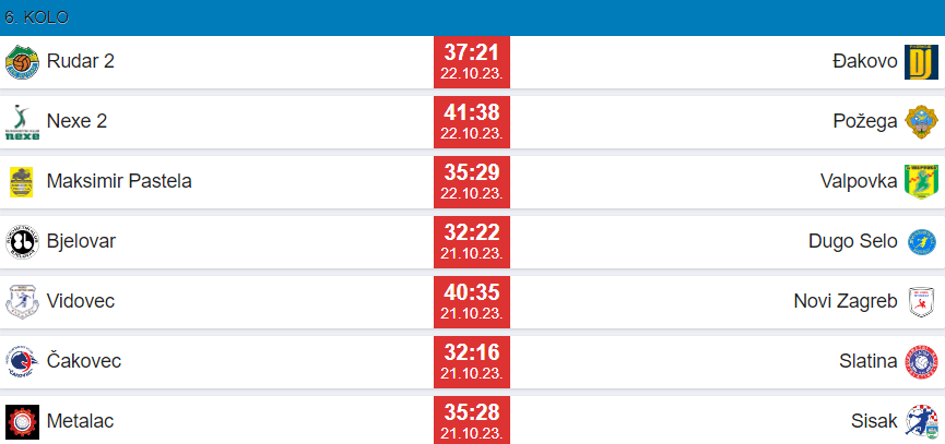 Čakovčani nastavljaju svoj sjajni niz pa su i nakon utakmice sa Slatinom bez izgubljenog boda, a bila je to jednosmjerna ulica u kojoj je lider postigao točno dvostruko više pogodaka od svoga gosta pri čemu je prednjačio Filip Goričanec s osam pogodaka. Kod Slatine jedan manje zabio Ivan Repić. U susjedskom derbiju je Nexe ponovo slavio nad Požežanima koji nemaju rješenja za Zelene koje je do pobjede vodio nezaustavljivi Karlo Jurić s 12 pogodaka dok je dva manje za goste postigao imenjak Karlo Grgurić. Valpovci sedam pogodaka Roka Markote te jedan manje Mateja Radovića nije bilo dovoljno za nešto više od poraza na gostovanju kod Maksimir Pastele, a Bjelovar nastavlja pratiti lidera nakon uvjerljive pobjede nad Dugim Selom za što najveće zasluge idu Tiboru Jurjeviću koji je zabio sedam pogodaka. Vidovec slavio nad Novim Zagrebom na pogon Borne Horeneca koji je imao 8 egzekucija, Đakovo doživjelo težak poraz u Samoboru s malo postignutih pogodaka pa je Krešimiri Klepo bio najbolji sa 4 pogotka.