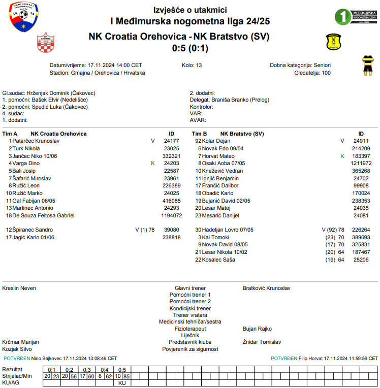 NK Croatia Orehovica – NK Bratstvo (SV) 0:5