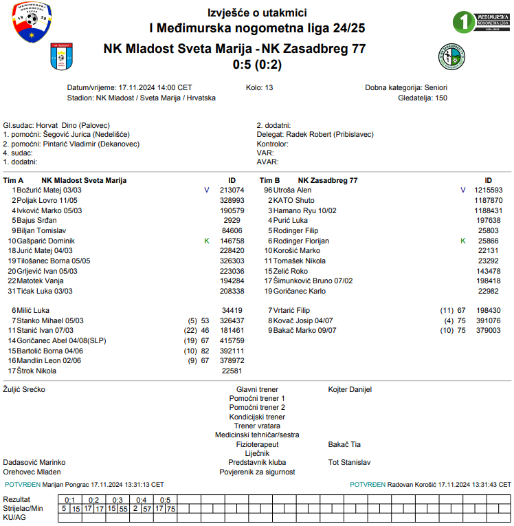 NK Mladost Sveta Marija – NK Zasadbreg 77 0:5