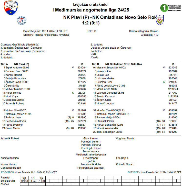 NK Plavi (P) – NK Omladinac Novo Selo Rok 1:2