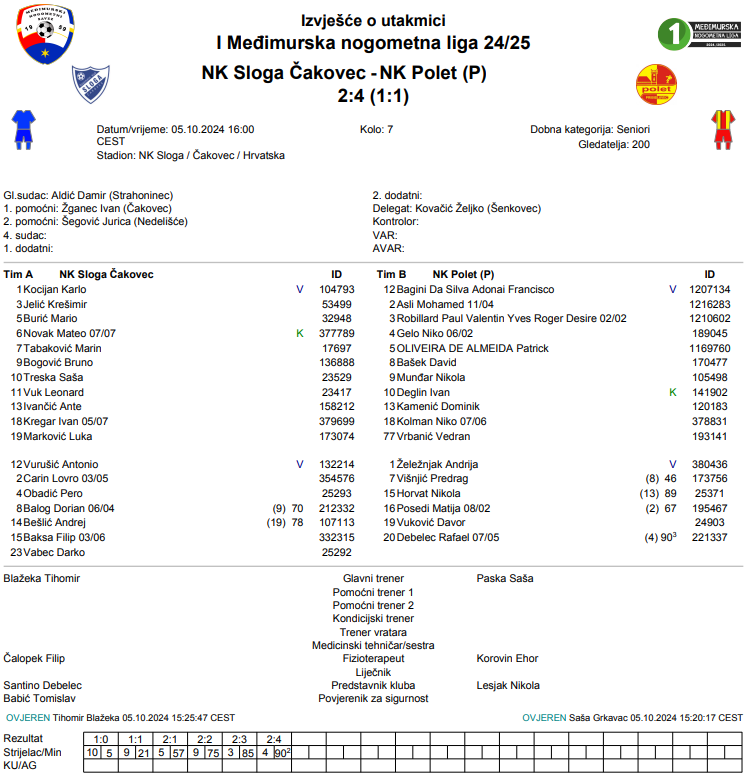 NK Sloga Čakovec – NK Polet (P) 2:4