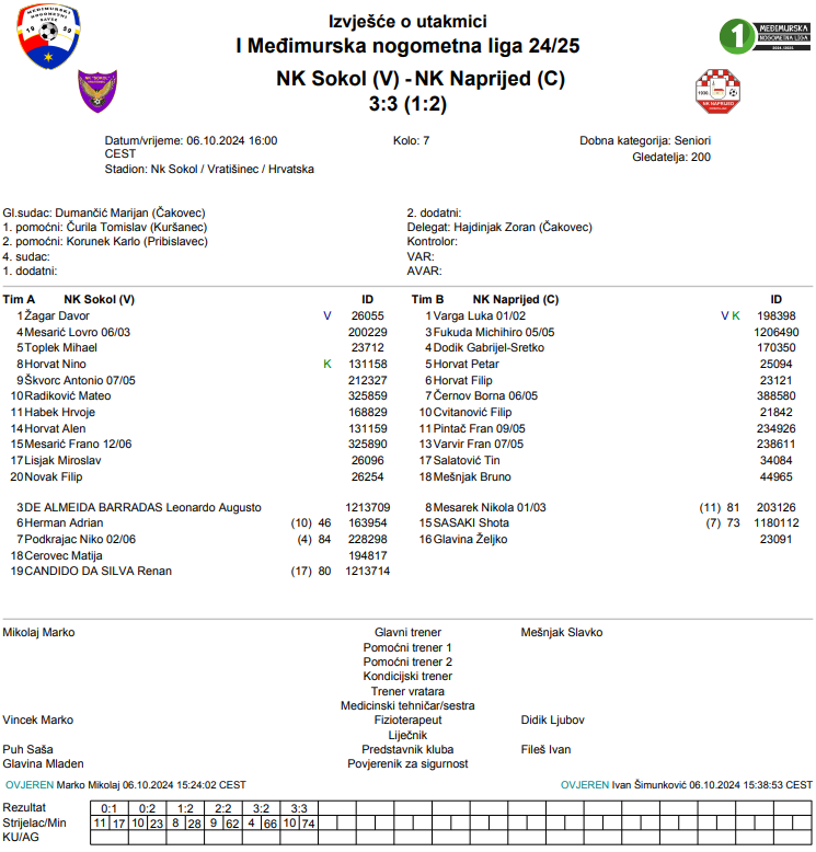 NK Sokol (V) – NK Naprijed (C) 3:3