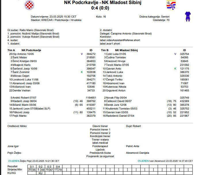 PODCRKAVLJE – MLADOST SIBINJ 0:4
