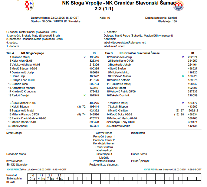SLOGA VRPOLJE – GRANIČAR SLAVONSKI ŠAMAC 2:2