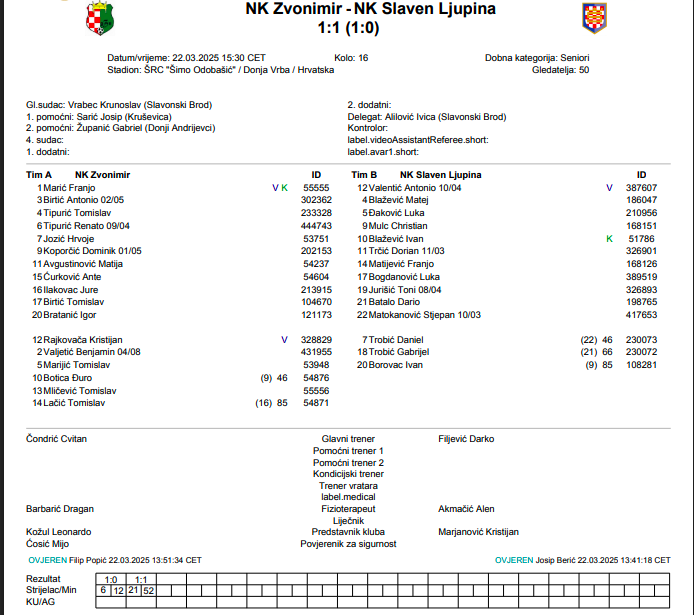 ZVONIMIR – SLAVEN LJUPINA 1:1