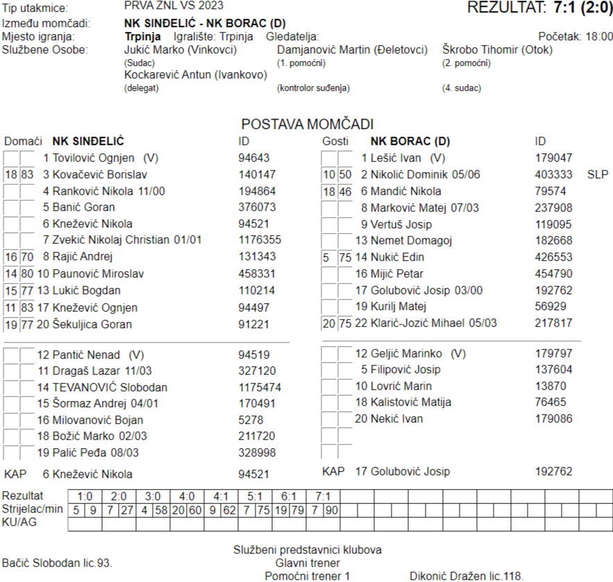 | 27 | 21.05.2023 18:00 | Trpinja | NK Sinđelić – NK Borac (D) | 7:1 | |