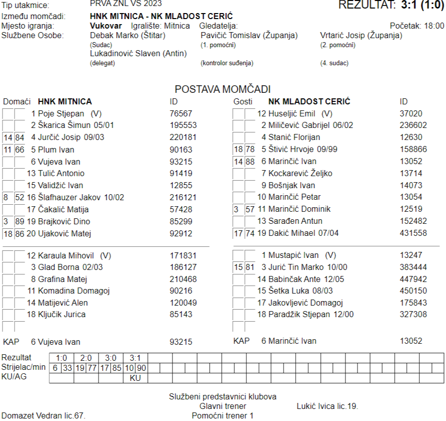 | 21.05.2023 18:00 | Vukovar | HNK Mitnica – NK Mladost Cerić | 3:1 | ||