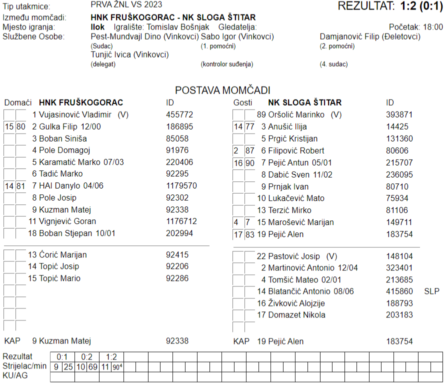 | 21.05.2023 18:00 | Ilok | HNK Fruškogorac – NK Sloga Štitar | 1:2 | ||