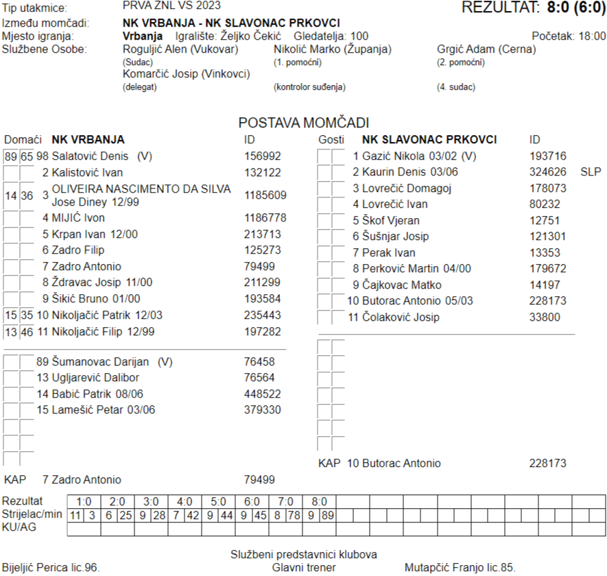 | 27 | 21.05.2023 18:00 | Vrbanja | NK Vrbanja – NK Slavonac Prkovci | 8:0 | |