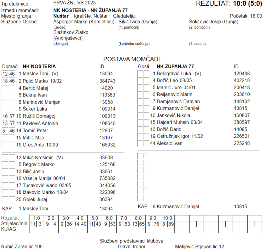 | 21.05.2023 18:00 | Nuštar | NK Nosteria – NK Županja 77 | 10:0 |