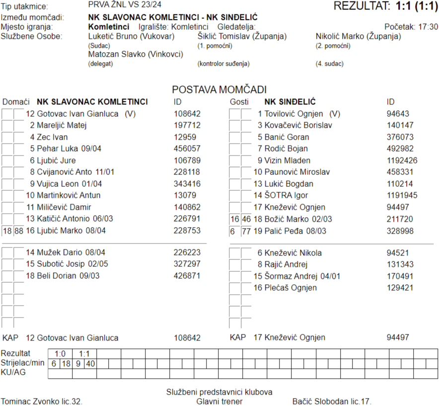 1 13.08.2023 17:30 Komletinci NK Slavonac Komletinci – NK Sinđelić 1:1