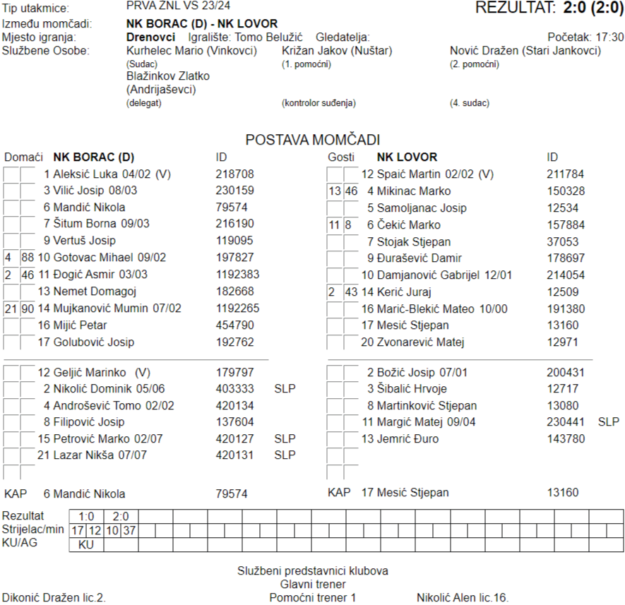 12.08.2023 17:30 Drenovci NK Borac (D) – NK Lovor 2:0
