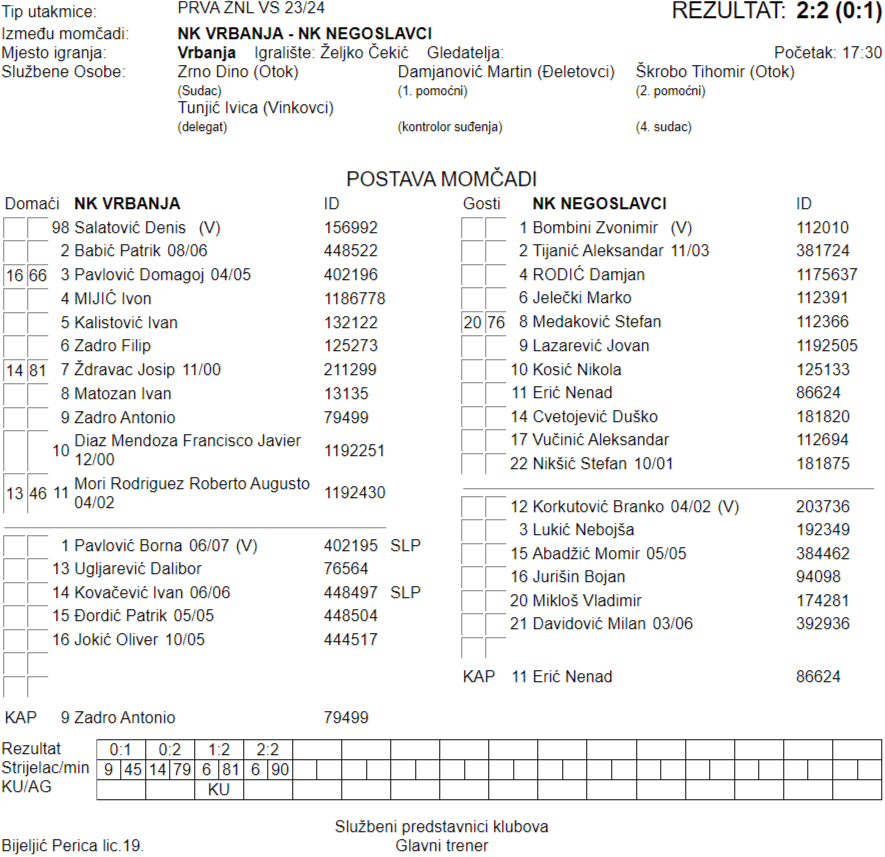 13.08.2023 17:30 Vrbanja NK Vrbanja – NK Negoslavci 2:2