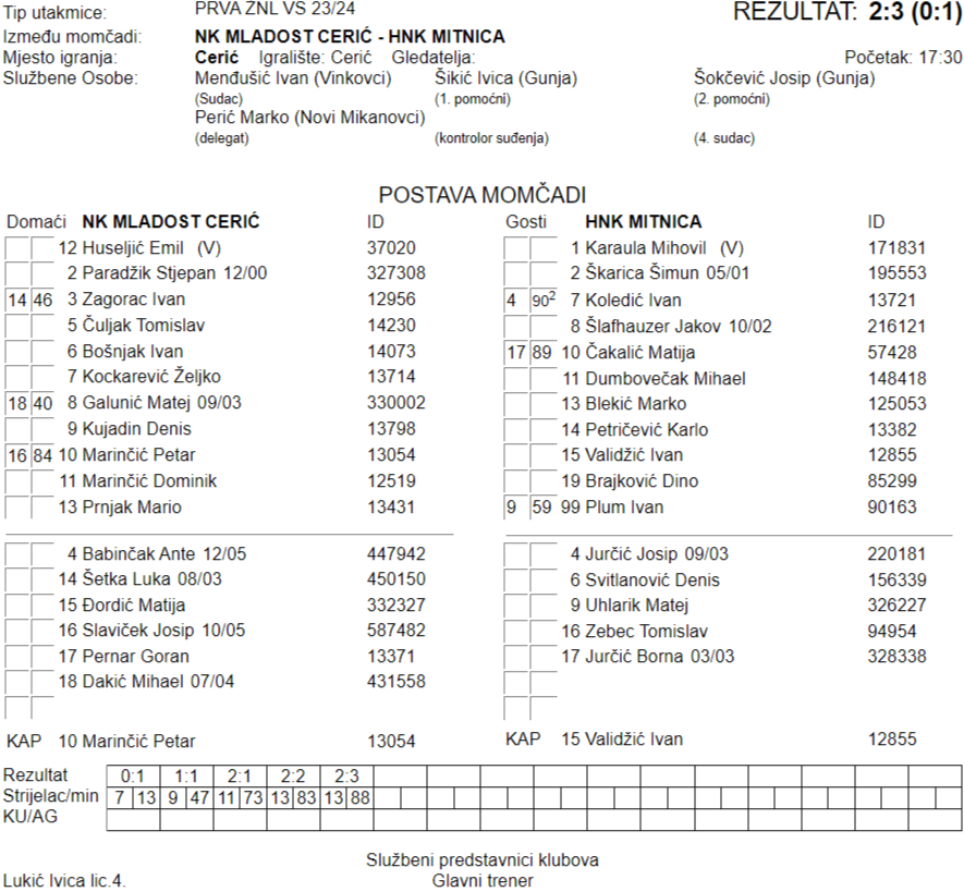 1 12.08.2023 17:30 Cerić NK Mladost Cerić – HNK Mitnica 2:3