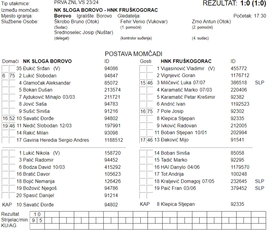 1 13.08.2023 17:30 Borovo NK Sloga Borovo – HNK Fruškogorac 1:0