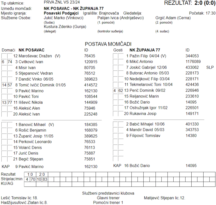 1 13.08.2023 17:30 Posavski Podgajci NK Posavac – NK Županja 77 2:0