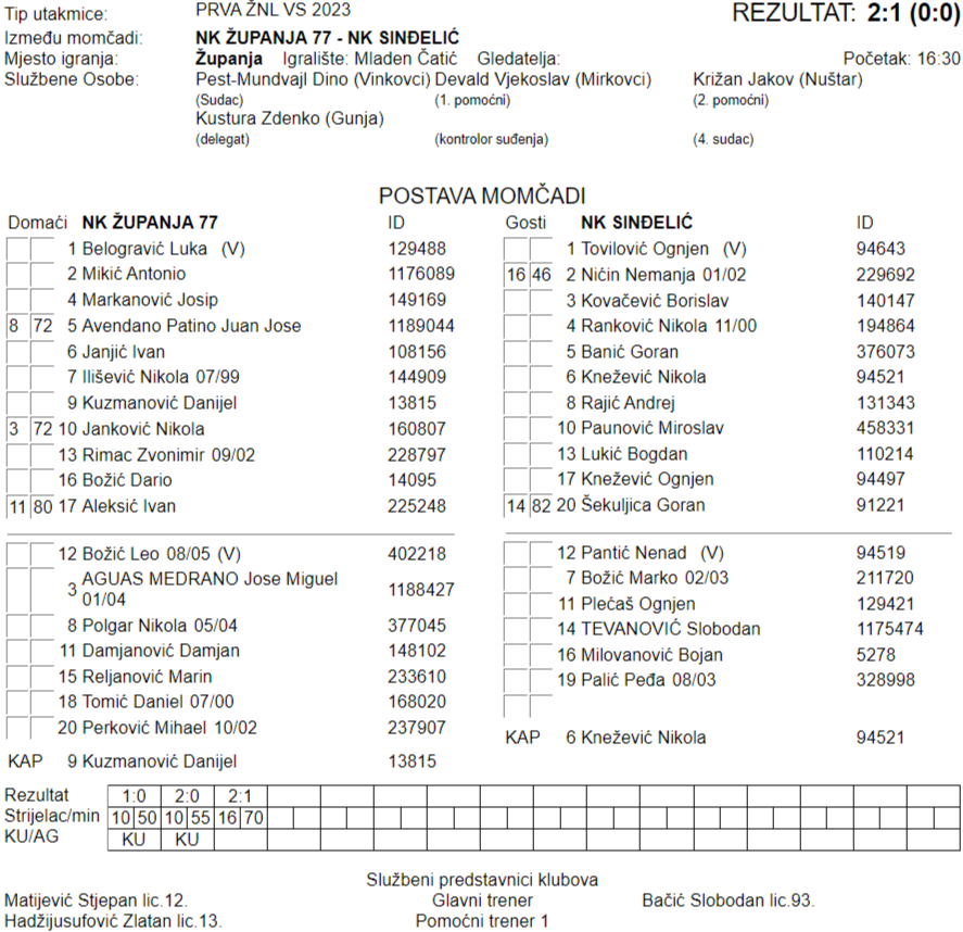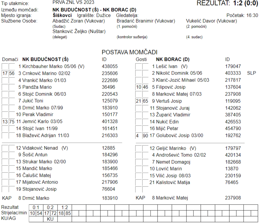 | 02.04.2023 16:30 | Županja | NK Županja 77 – NK Sinđelić | 2:1 | ||