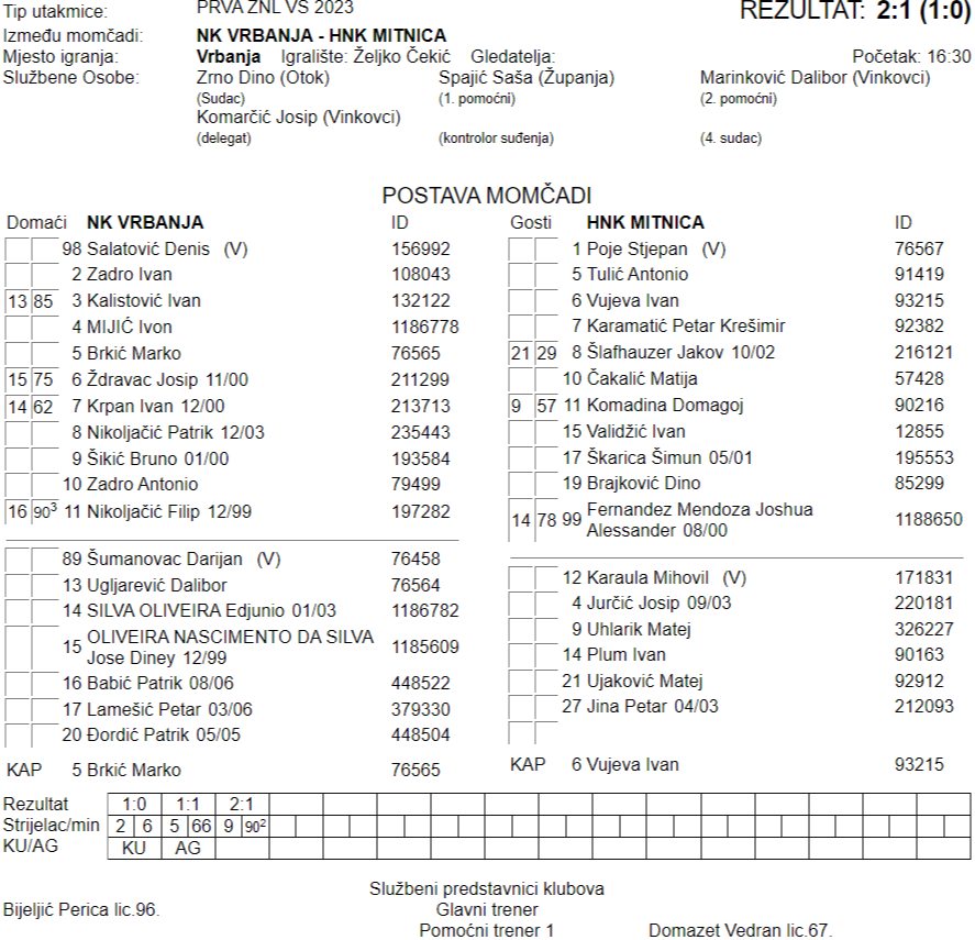 | 02.04.2023 16:30 | Vrbanja | NK Vrbanja – HNK Mitnica | 2:1 | ||