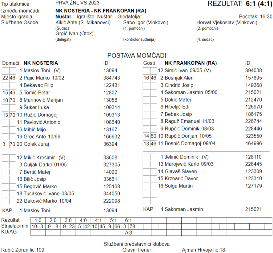 | 19 | 02.04.2023 16:30 | Nuštar | NK Nosteria – NK Frankopan (RA) | 6:1 | |