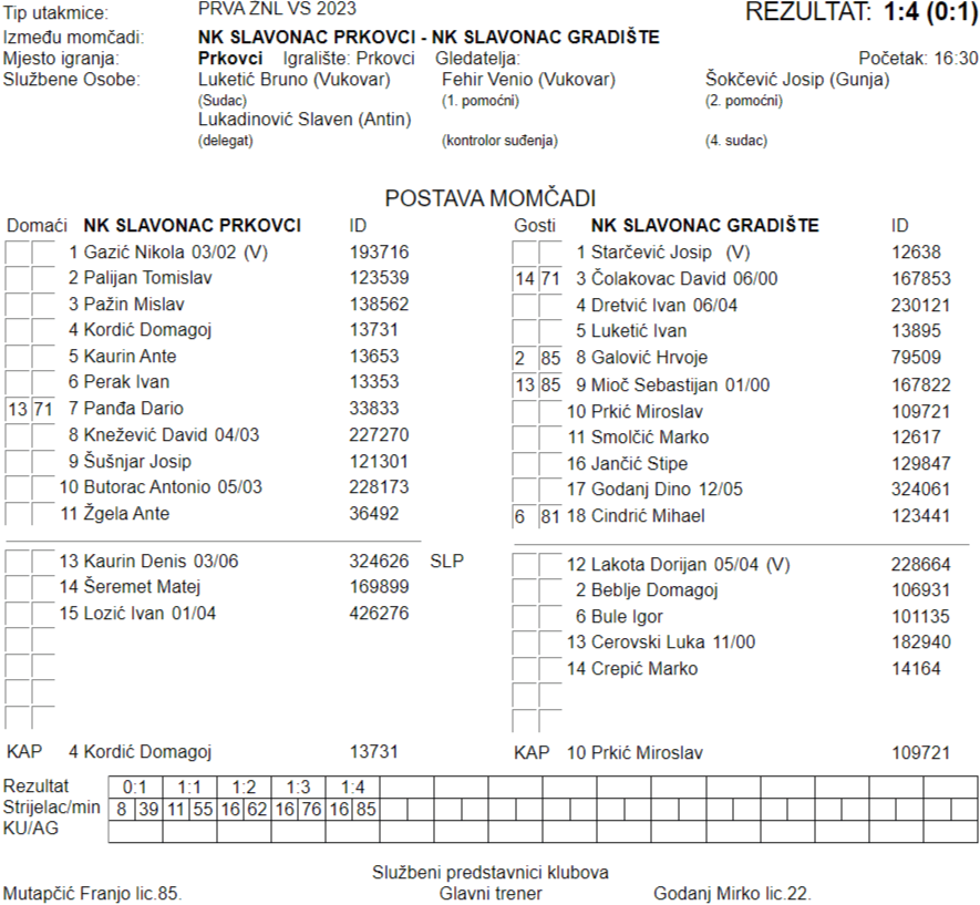 | 02.04.2023 16:30 | Prkovci | NK Slavonac Prkovci – NK Slavonac Gradište | 1:4 | ||