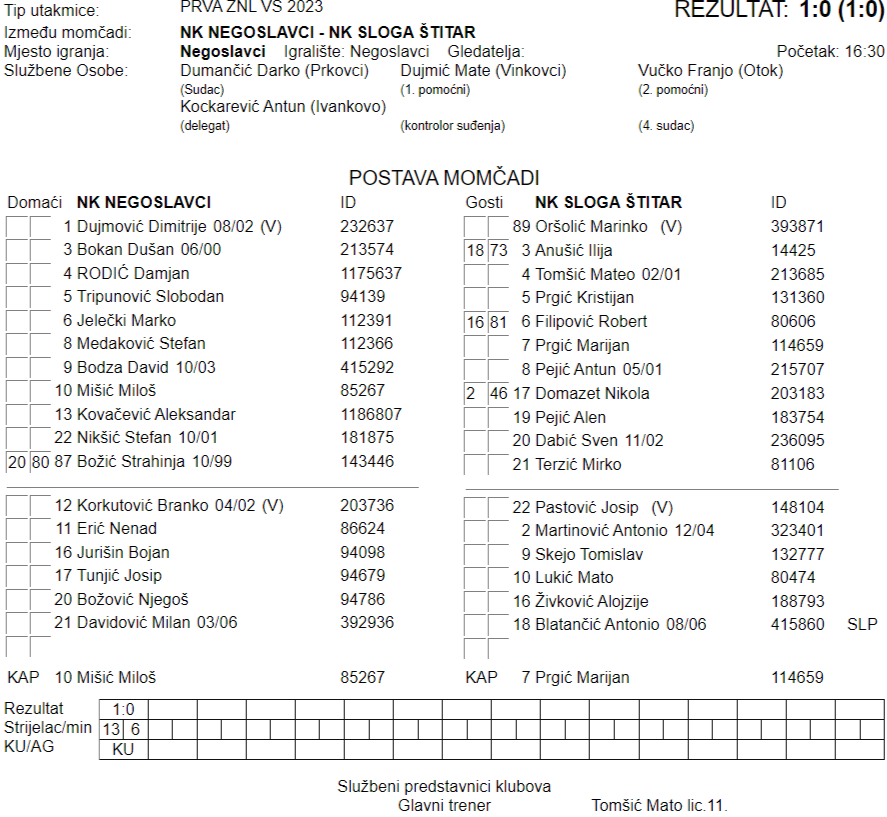 | 19 | 02.04.2023 16:30 | Negoslavci | NK Negoslavci – NK Sloga Štitar | 1:0 |