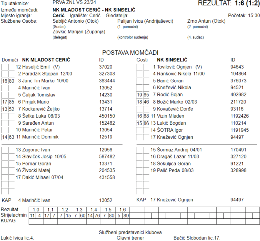 | 07.10.2023 15:30 | Cerić | NK Mladost Cerić – NK Sinđelić | 1:6 | ||