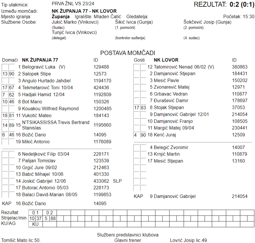 | 07.10.2023 15:30 | Županja | NK Županja 77 – NK Lovor | 0:2 | ||