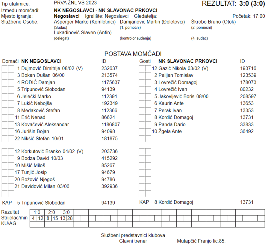 | 19.04.2023 17:00 | Negoslavci | NK Negoslavci – NK Slavonac Prkovci | 3:0 | ||